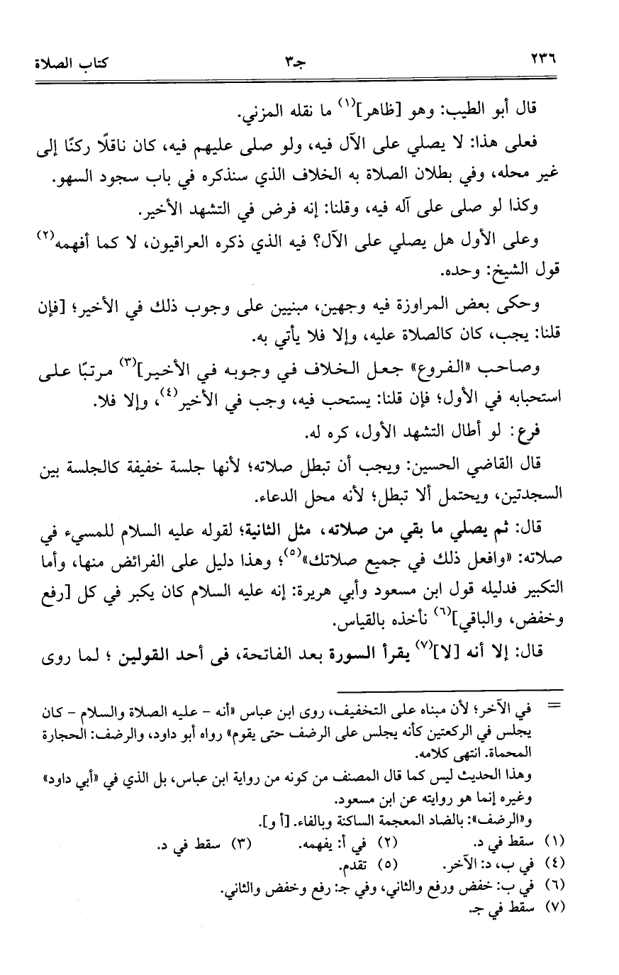 فعلى هذا: لا يصلي على الآل فيه، ولو صلى عليهم فيه، كان ناقلاً ركناً إلى غير محله، وفي بطلان الصلاة به الخلاف الذي سنذكره في باب سجود السهو.