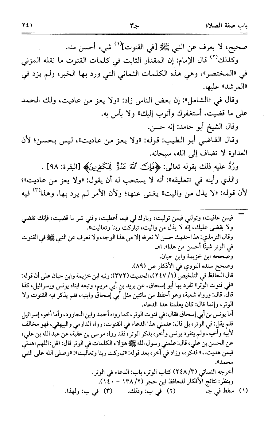 وكذلك قال الإمام: إن المقدار الثابت في كلمات القنوت ما نقله المزني في "المختصر"، وهي هذه الكلمات الثماني التي ورد بها الخبر، ولم يزد في "المرشد" عليها.