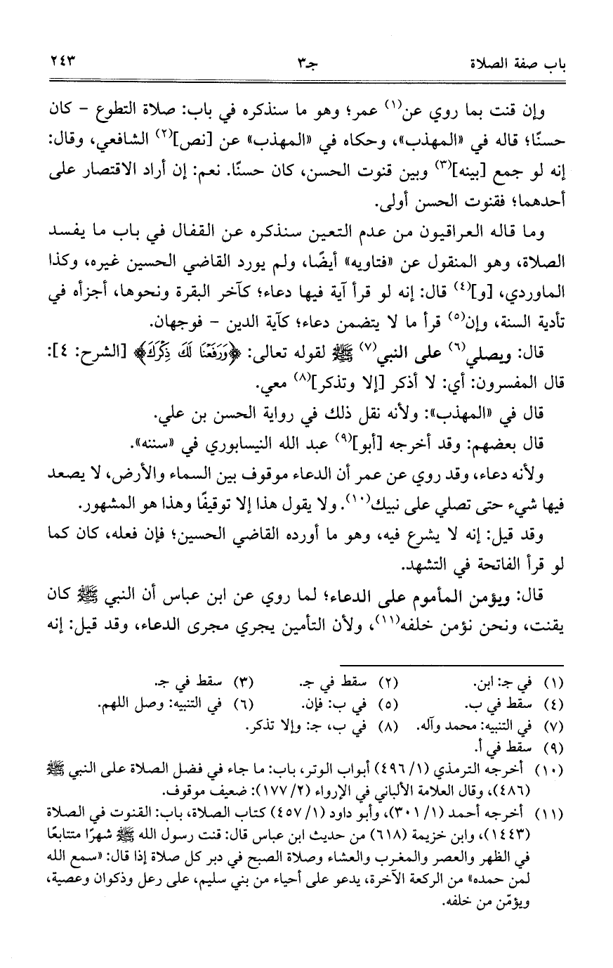 وإن قنت بما روي عن عمر؛ وهو ما سنذكره في باب: صلاة التطوع- كان حسناً؛ قاله في "المهذب"، وحكاه في "المهذب" عن [نص] الشافعي، قوال: إنه لو جمع [ينه] وبني قنوت الحسن، كان حسناً. نعم: إن أراد الاقتصار على أحدهما؛ فقنوت الحسن أولى.