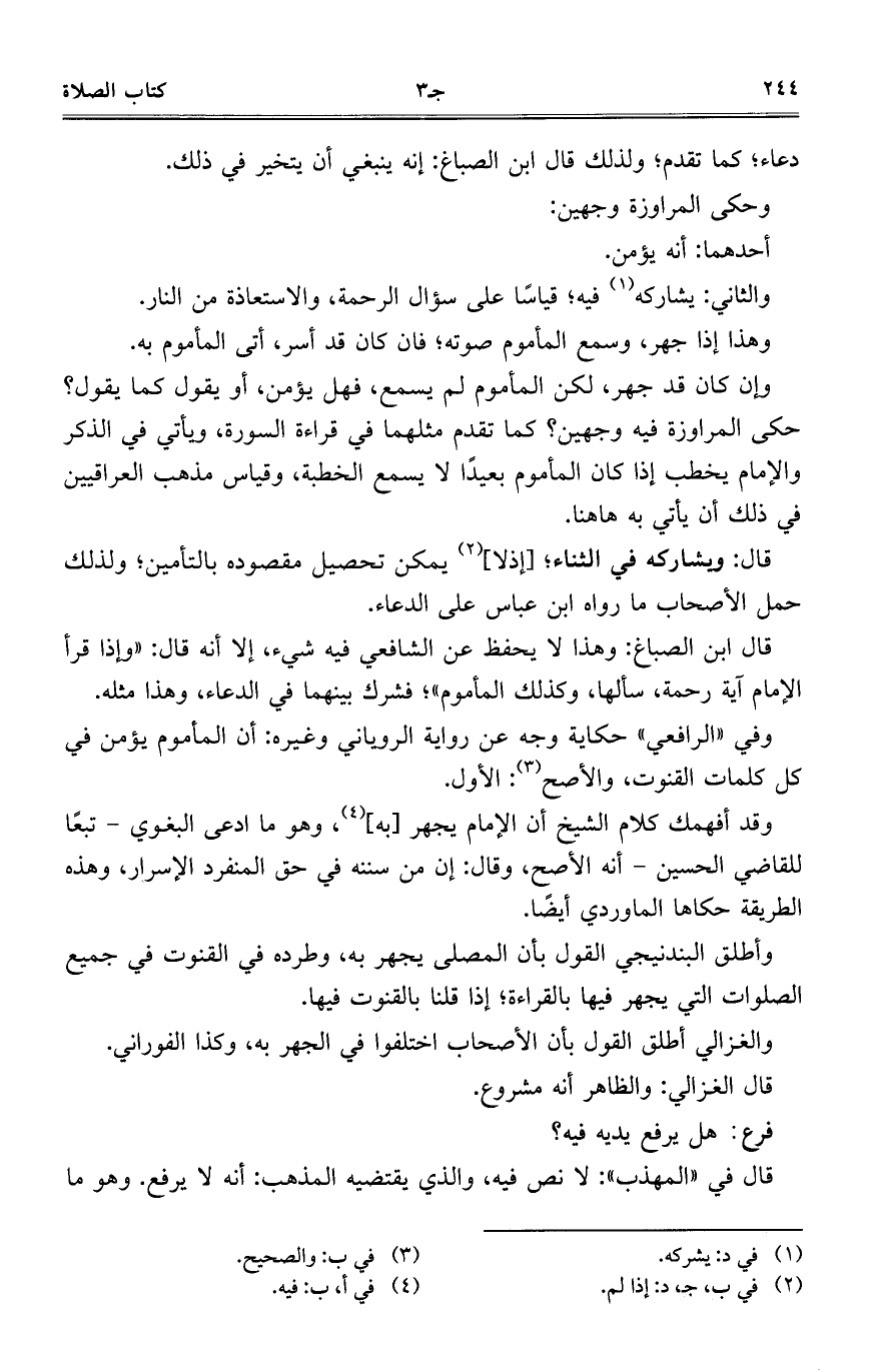 وأطلق البندنيجي القول بأن المصلى يجهر به، وطرده في القنوت في جميع الصلوات التي يجهر فيها بالقراءة؛ إذا قلنا بالقنوت فيها.