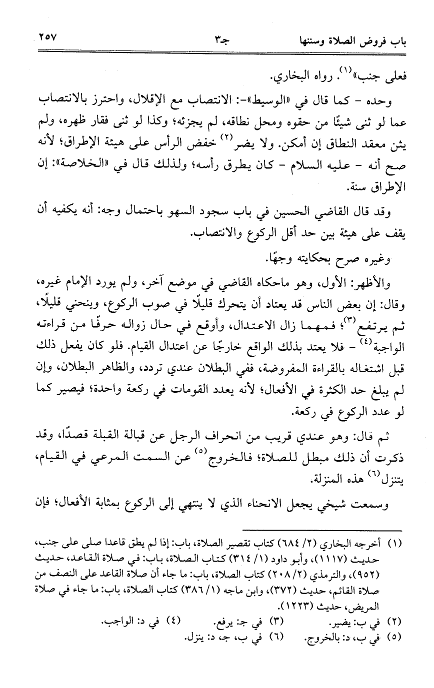 ثم قال: وهو عندي قريب من انحراف الرجل عن قبالة القبلة قصداً، وقد ذكرت أن ذلك مبطل للصلاة؛ فالخروج عن السمت المرعي في القيام، يتنزل هذه المنزلة.