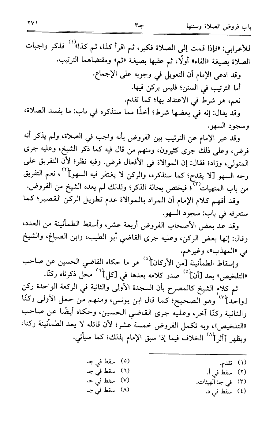 وقد يقال: إنه في بعضها شرط؛ أخذاً مما سنذكره في باب: ما يفسد الصلاة، وسجود السهو.