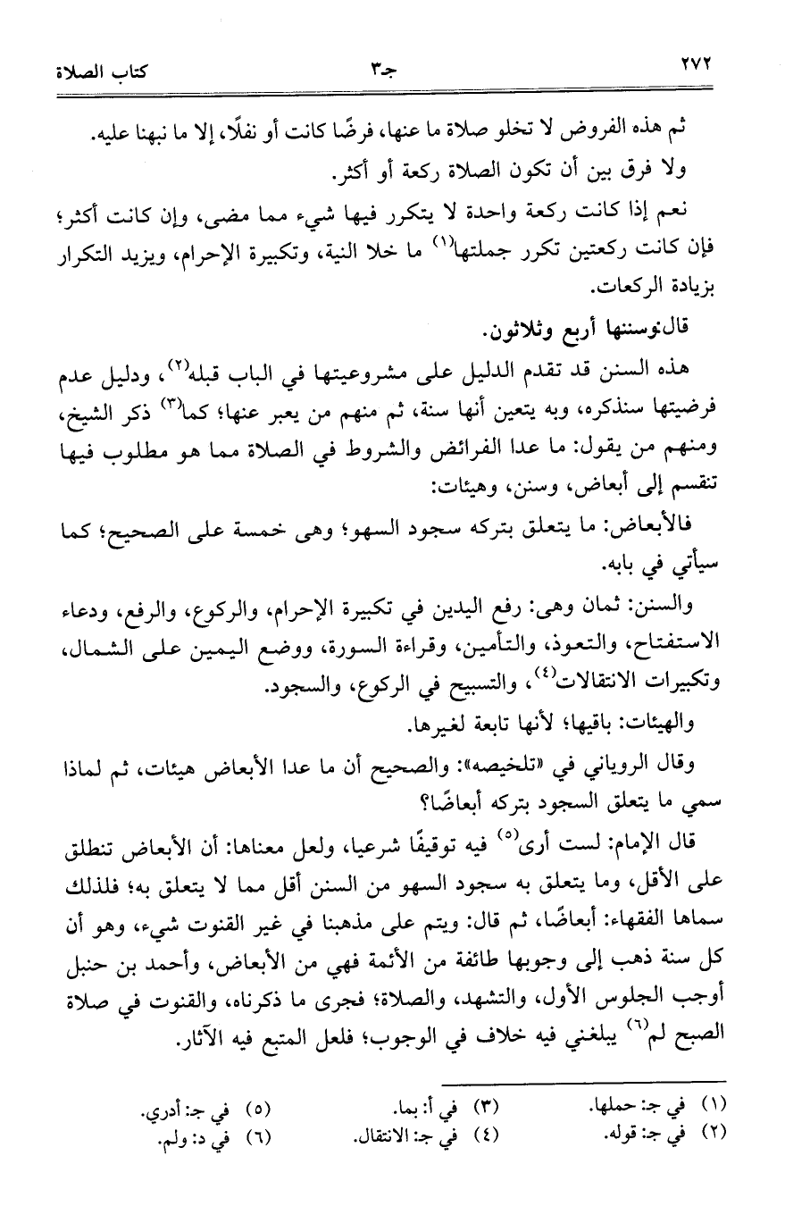 وقال الروياني في "تلخيصه": والصحيح أن ما عدا الأبعاض هيئات، ثم لماذا سمي ما يتعلق السجود بتركه أبعاضاً؟