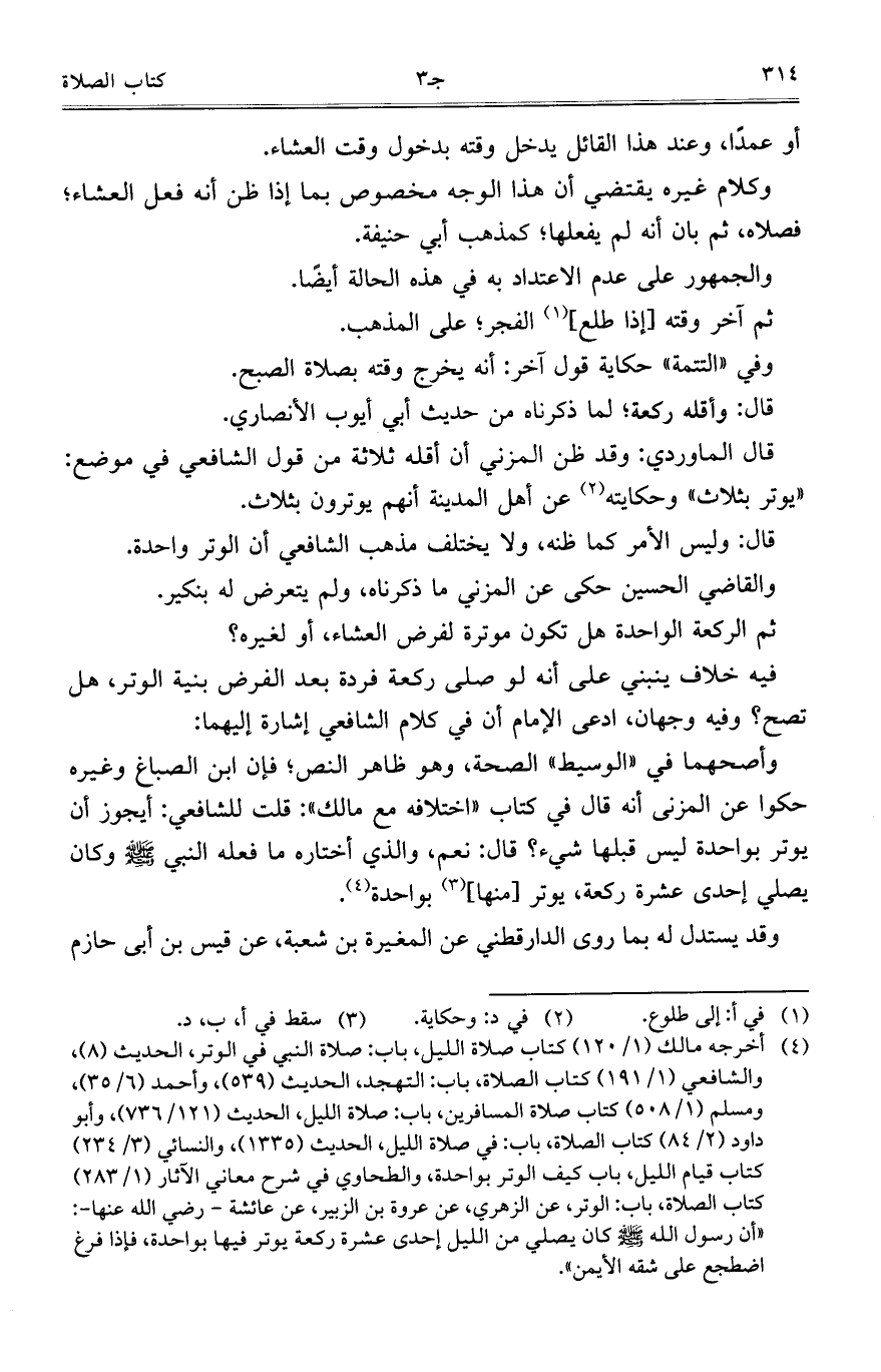 قال الماوردي: وقد ظن المزني أن أقله ثلاثة من قول الشافعي في موضع: "يوتر بثلاث" وحكايته عن أهل المدينة أنهم يوترون بثلاث.