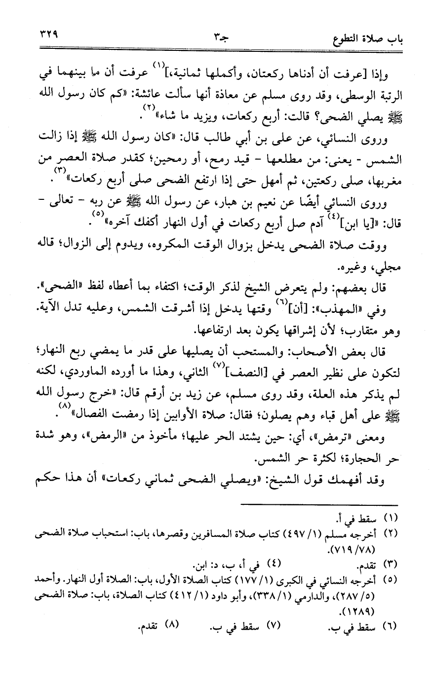 وقد أفهمك قول الشيخ: "ويصلي الضحى ثماني ركعات" أن هذا حكم