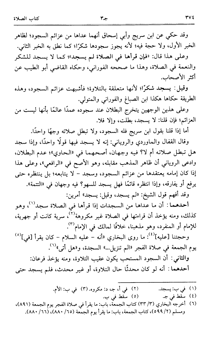 وقيل: يسجد شكراً؛ لأنها متعلقة بالتلاوة؛ فأشبهت عزائم السجود، وهذه الطريقة حكاها هكذا ابن الصباغ والفوراني والمتولي.