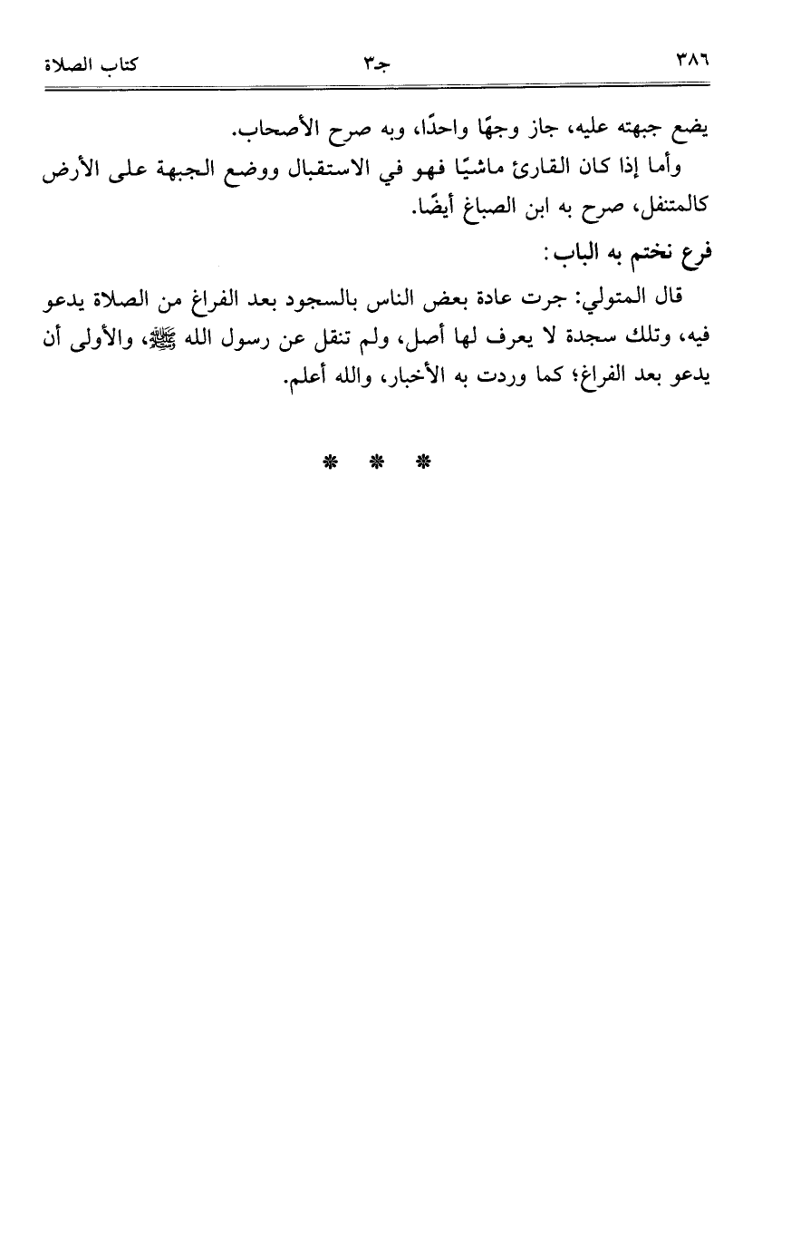 وأما إذا كان القارئ ماشياً فهو في الاستقبال ووضع الجبهة على الأرض كالمتنفل، صرح به ابن الصباغ أيضاً.