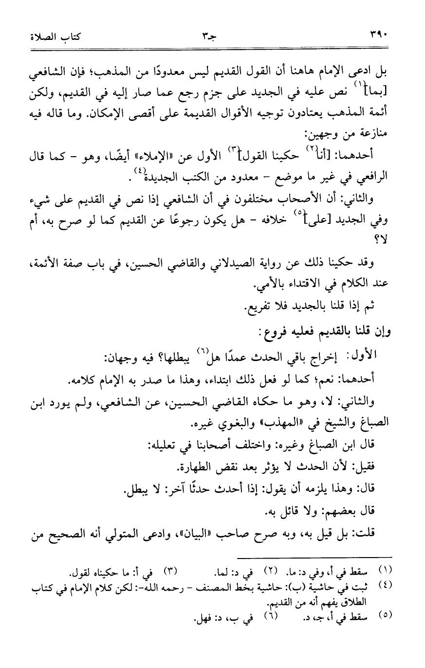 بل ادعى الإمام هاهنا أن القول القديم ليس معدوداً من المذهب؛ فإن الشافعي [بما] نص عليه في الجديد على جزم رجع عما صار إليه في القديم، ولكن أئمة المذهب يعتادون توجيه الأقوال القديمة على أقصى الإمكان. وماقاله فيه منازعة من وجهين: