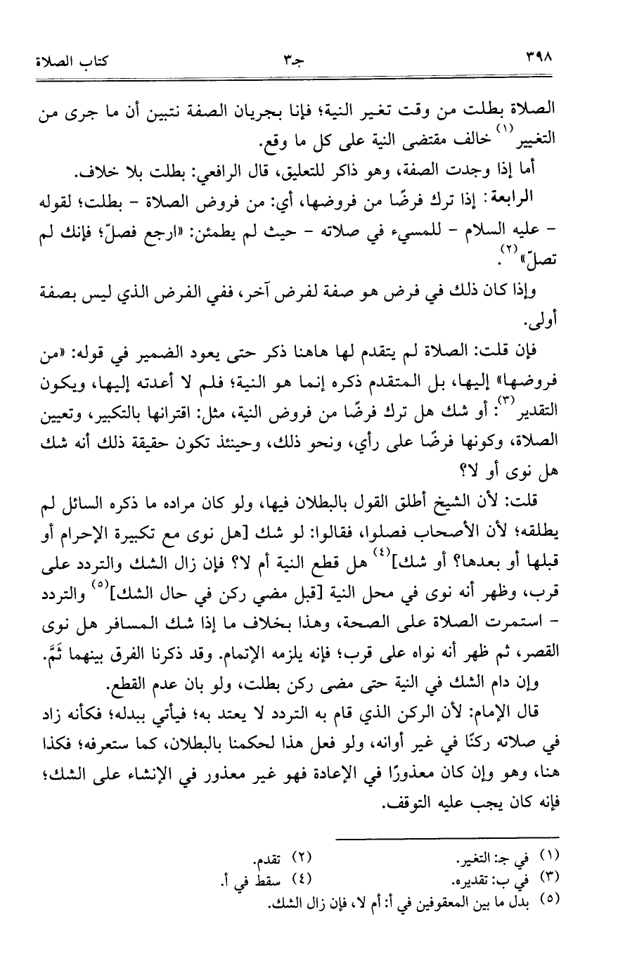 قلت: لأن الشيخ أطلق القول بالبطلان فيها، ولو كان مراده ما ذكره السائل لم يطلقه؛ لأن الأصحاب فصلوا، فقالوا: لو شك [هل نوى مع تكبيرة الإحرام أو قبلها أو بعدها؟ أو شك] هل قطع النية أم لا؟ فإن زال الشك والتردد على قرب، وظهر أنه نوى في محل النية [قبل مضي ركن في حال الشك] والتردد-استمرت الصلاة على الصحة، وهذا بخلاف ما إذا شك المسافر هل نوى القصر، ثمظهر أنه نواه على قرب؛ فنه يلزمه الإتمام. وقد ذكرنا الفرق بينهما ثَمَّ.