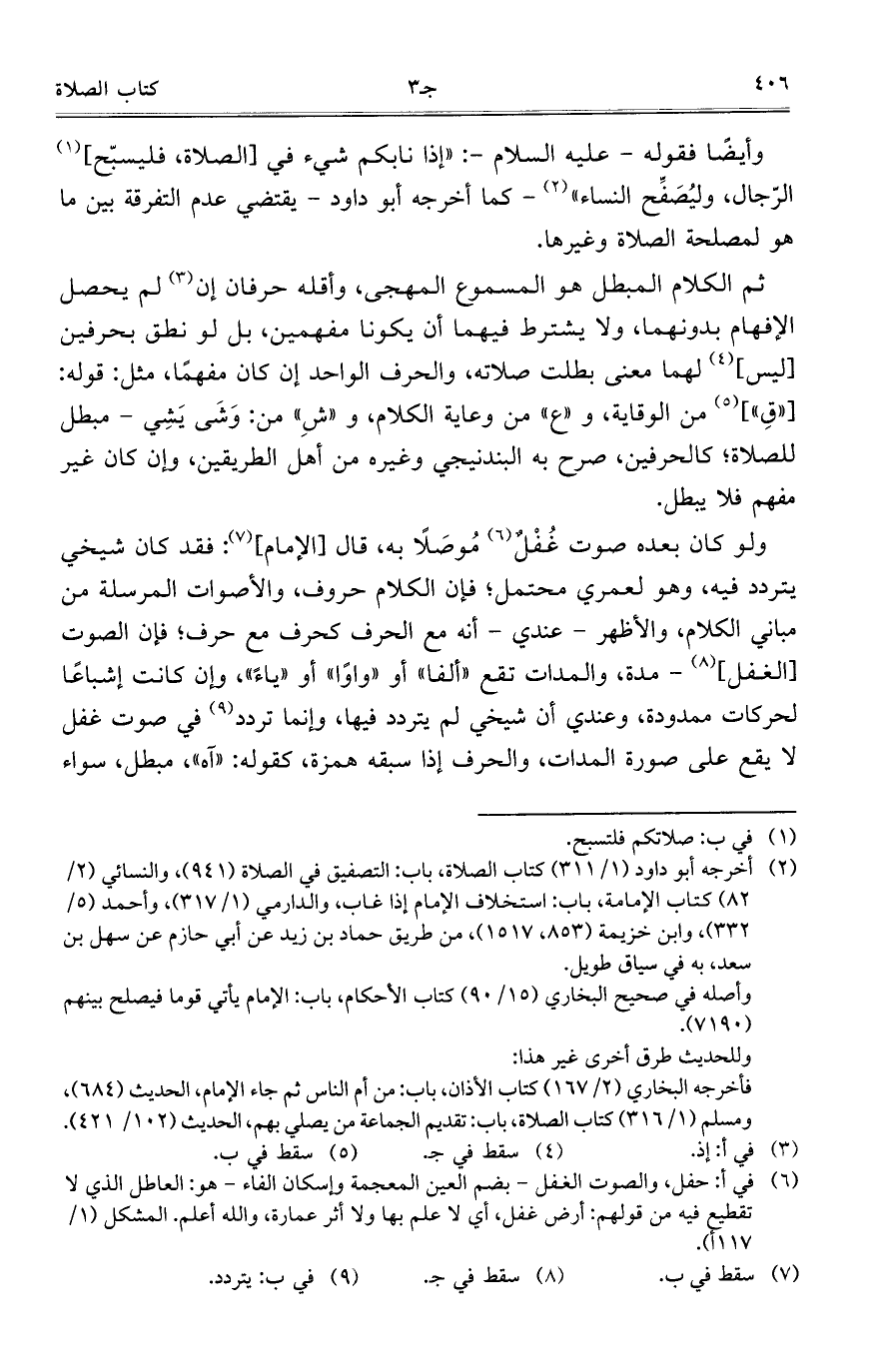 وأيضاً فقوله -عليه السلام-:"إذا نابكم شيء في [الصلاة، فليسبّح] الرّجال، وليُصَفِّح النساء"-كما أخرجه أبو داود- يقتضي عدم التفرقة بين ما هو لمصلحة الصلاة وغيرها.