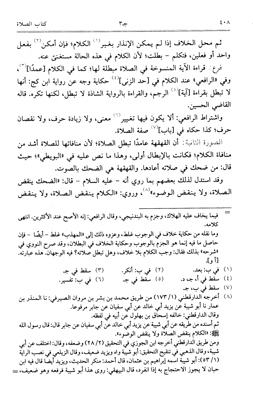 وقد استدل لذلك بعضهم بما روي أنه-عليه السلام-قال: "الضحك ينقض الصلاة، ولا ينقض الوضوء"، وروي: "الكلام ينقض الصلاة، ولا ينقض