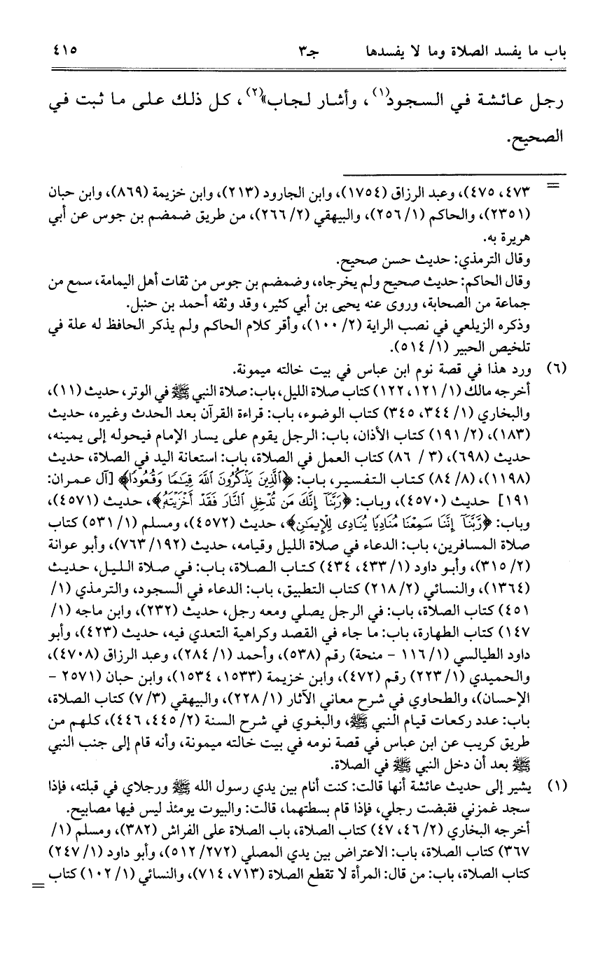 رجل عائشة في السجود، وأشار لجاب"، كل ذلك على ما ثبت في الصحيح.