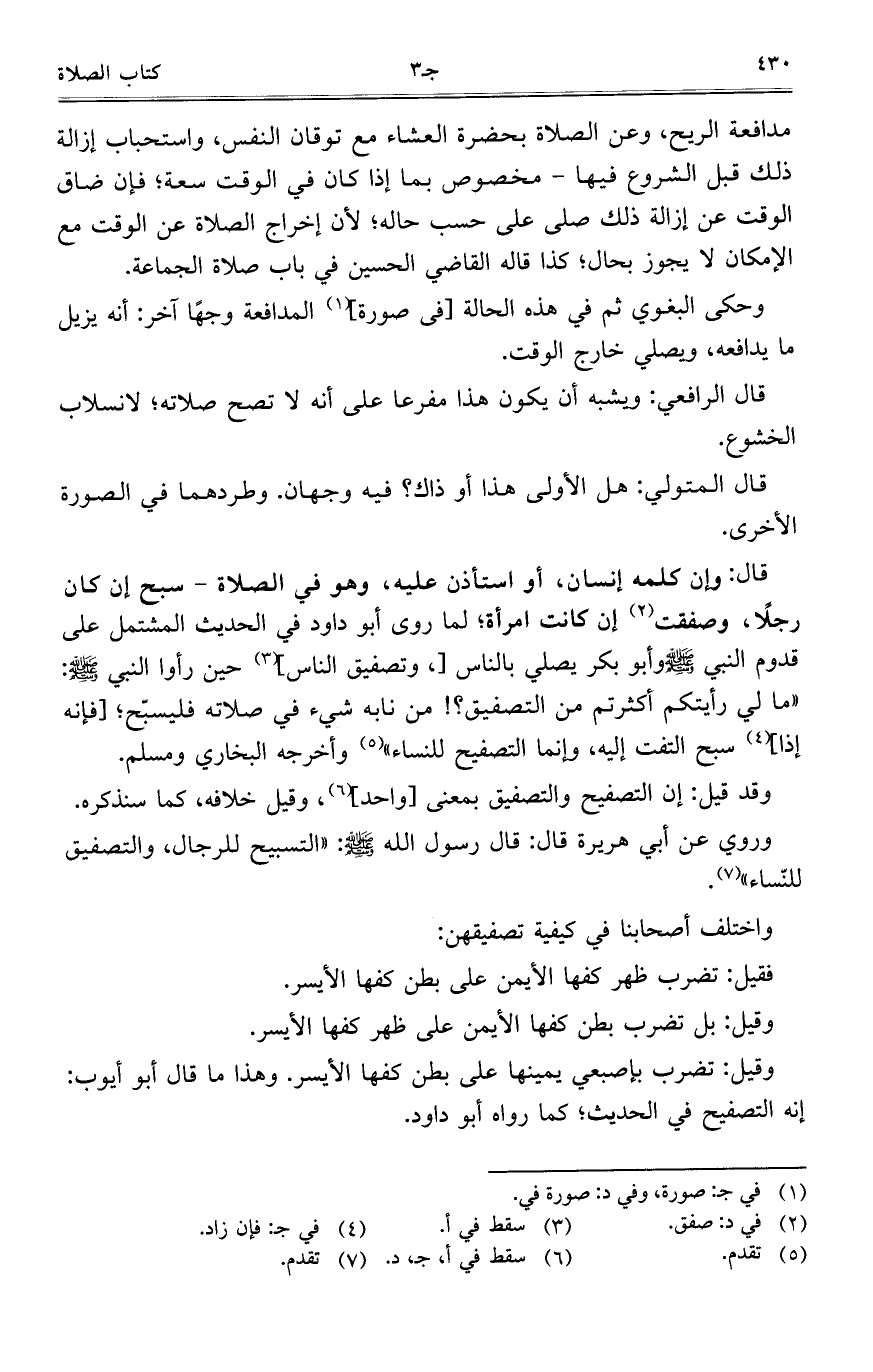 واختلف أصحابنا في كيفية تصفيقهن: