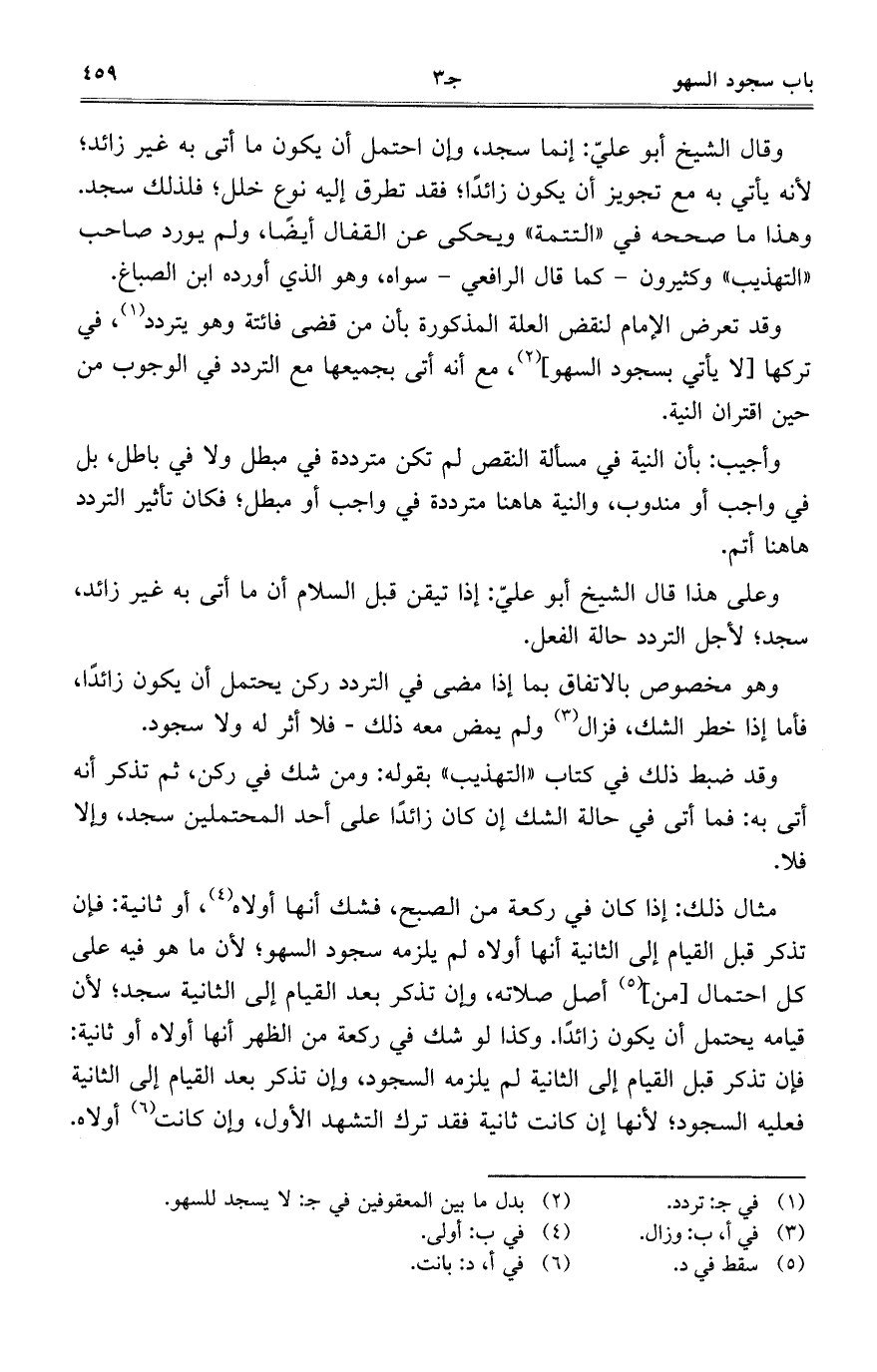 وقال الشيخ أبو عليّ: إنما سجد، وإنما احتمل أن يكون ما أتى به غير زائد؛ لأنه يأتي به مع تجويز ان يكون زائداً؛ فقد تطرق إليه نوع خلل؛ فلذلك سجد. وهذا ما صححه في "التتمة" ويحكي عن القفال أيضاً، ولم يورد صاحب "التهذيب" وكثيرون -كما قال الرافعي- سواه، وهو الذي اورده ابن الصباغ.