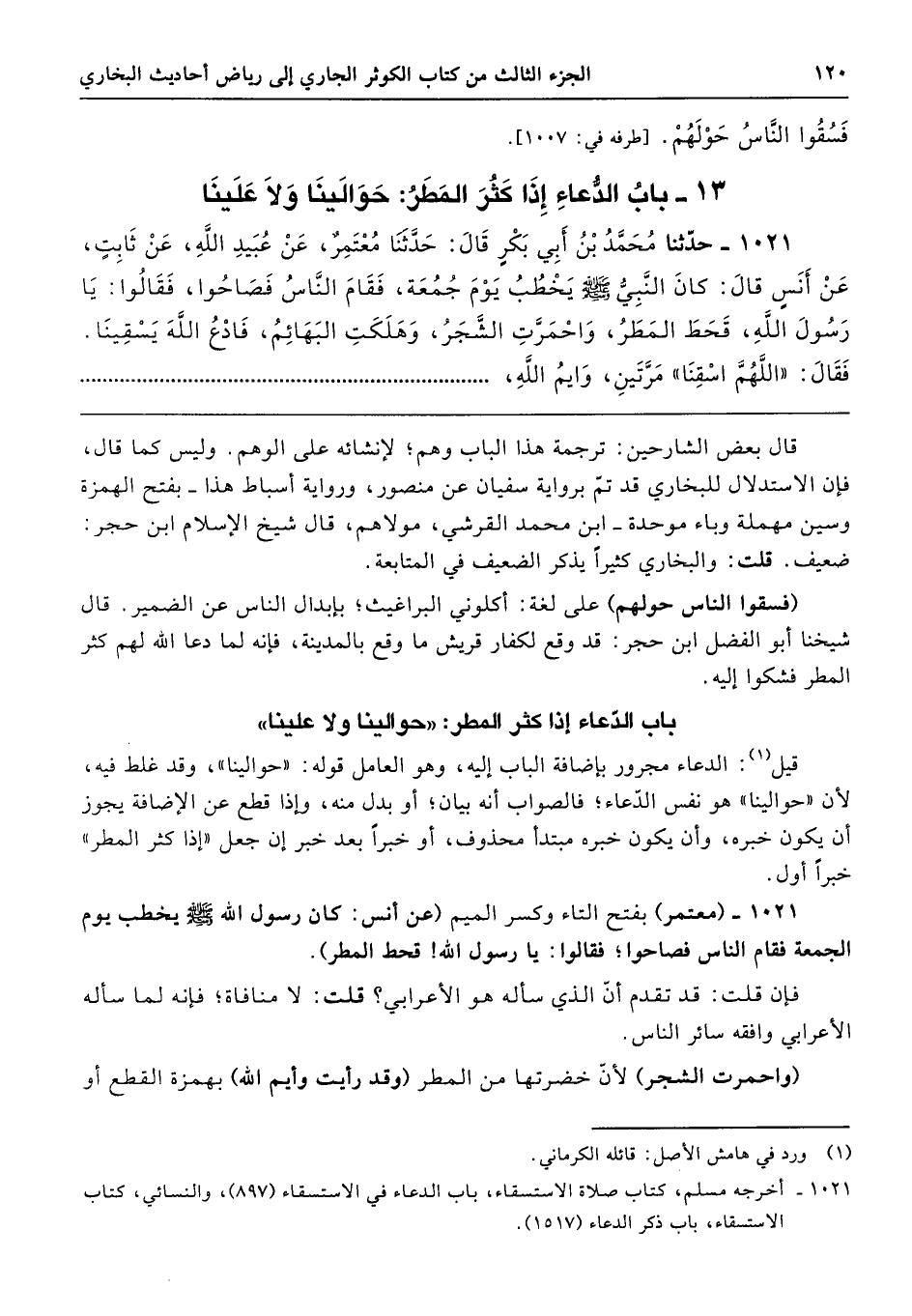 كتاب الكوثر الجاري إلى رياض أحاديث البخاري (اسم الجزء: 3)