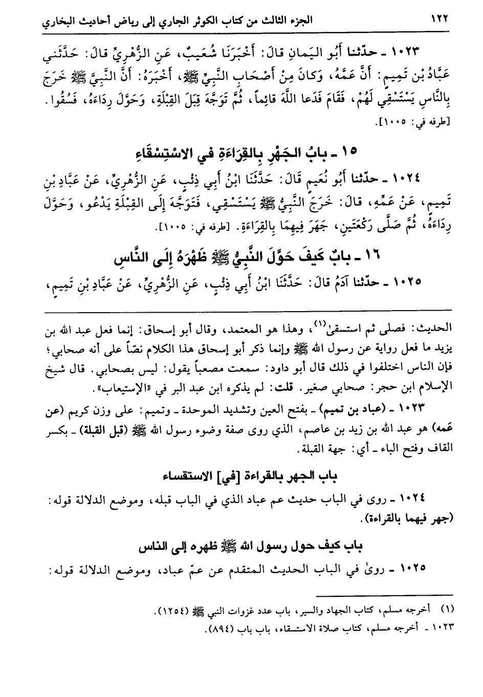 1025 - روى في الباب الحديث المتقدم عن عمّ عباد، وموضع الدلالة قوله: