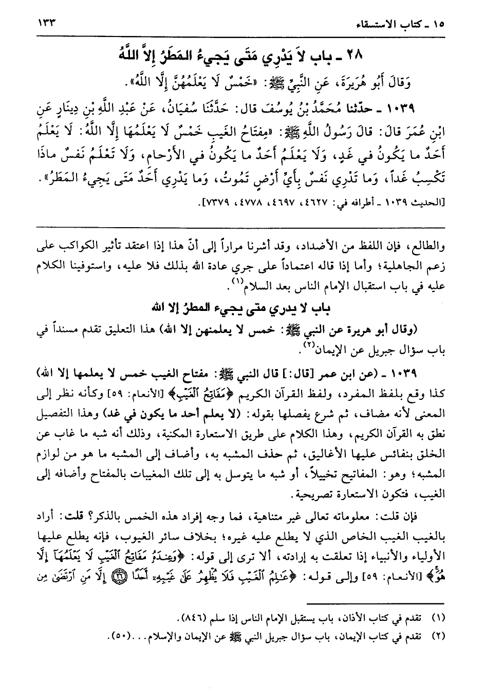 28 - باب لاَ يَدْرِى مَتَى يَجِئُ الْمَطَرُ إِلاَّ اللَّهُ
