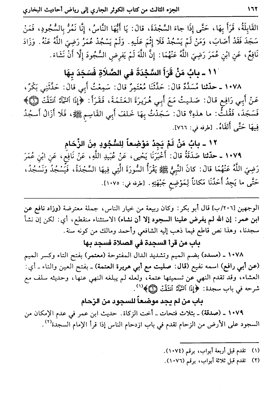 1079 - (صدقة) -بثلاث فتحات- أخت الزكاة. حديث ابن عمر في عدم الإمكان من السجود على الأرض من الزحام تقدم في باب ازدحام الناس إذا قرأ الإِمام السجدة.