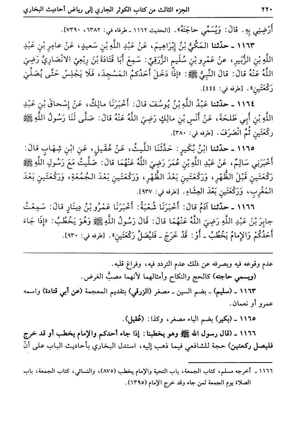 1163 - (سليم) -بضم السين- مصغر (الزُّرَقيّ) بتقديم المعجمة (عن أبي قتادة) واسمه عمرو أو نعمان.