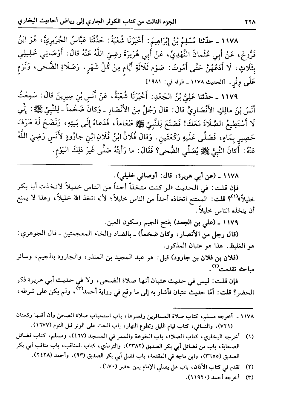 1178 - (عن أبي هريرة، قال: أوصاني خليلي).