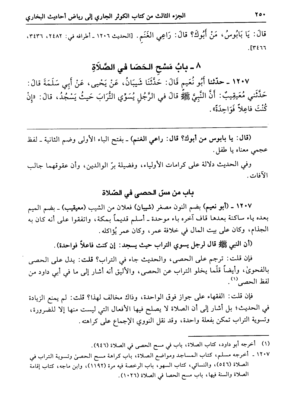 8 - باب مَسْحِ الْحَصَى فِي الصَّلاَةِ