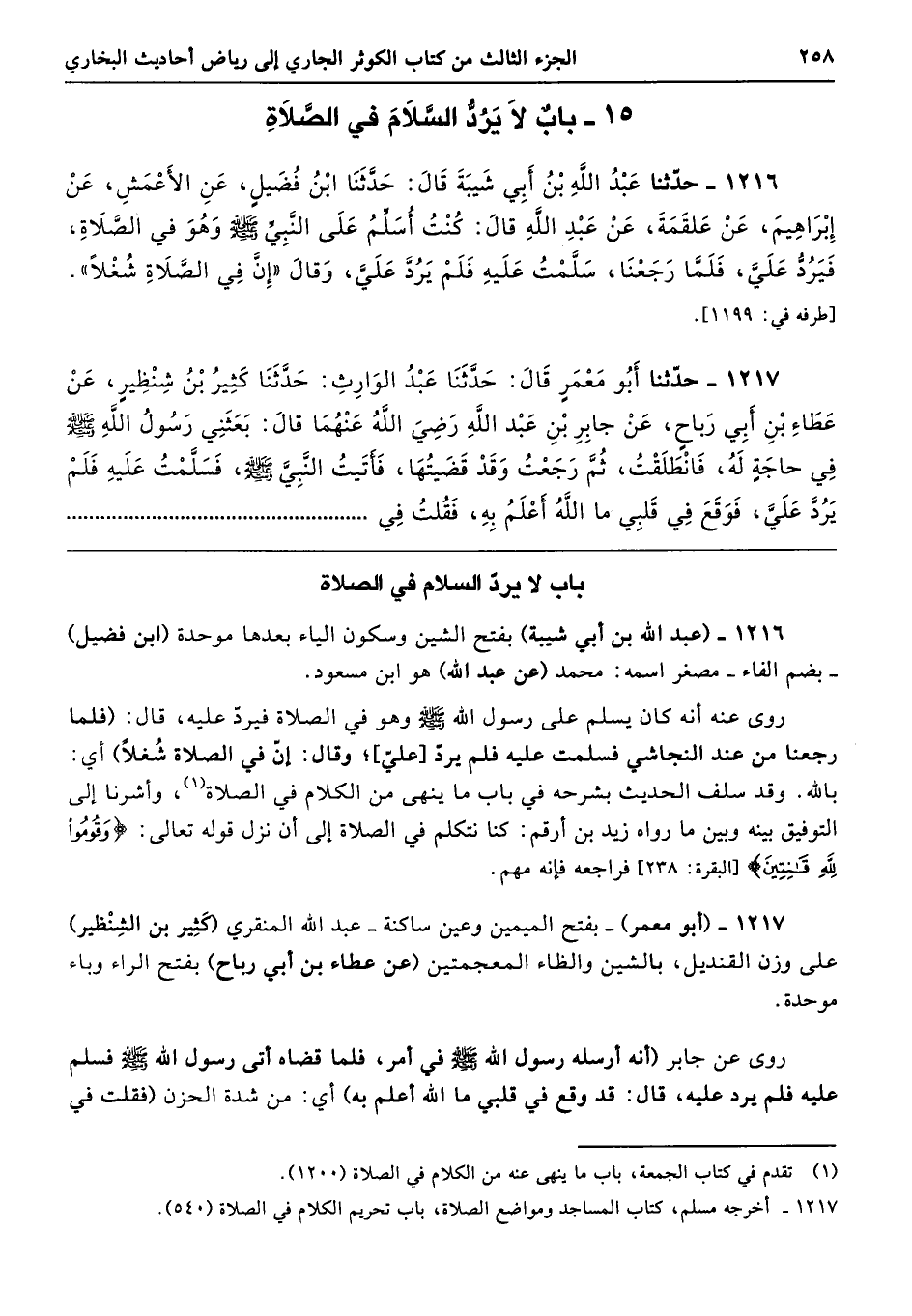 15 - بابٌ لاَ يَرُدُّ السَّلاَمَ في الصَّلاَةِ