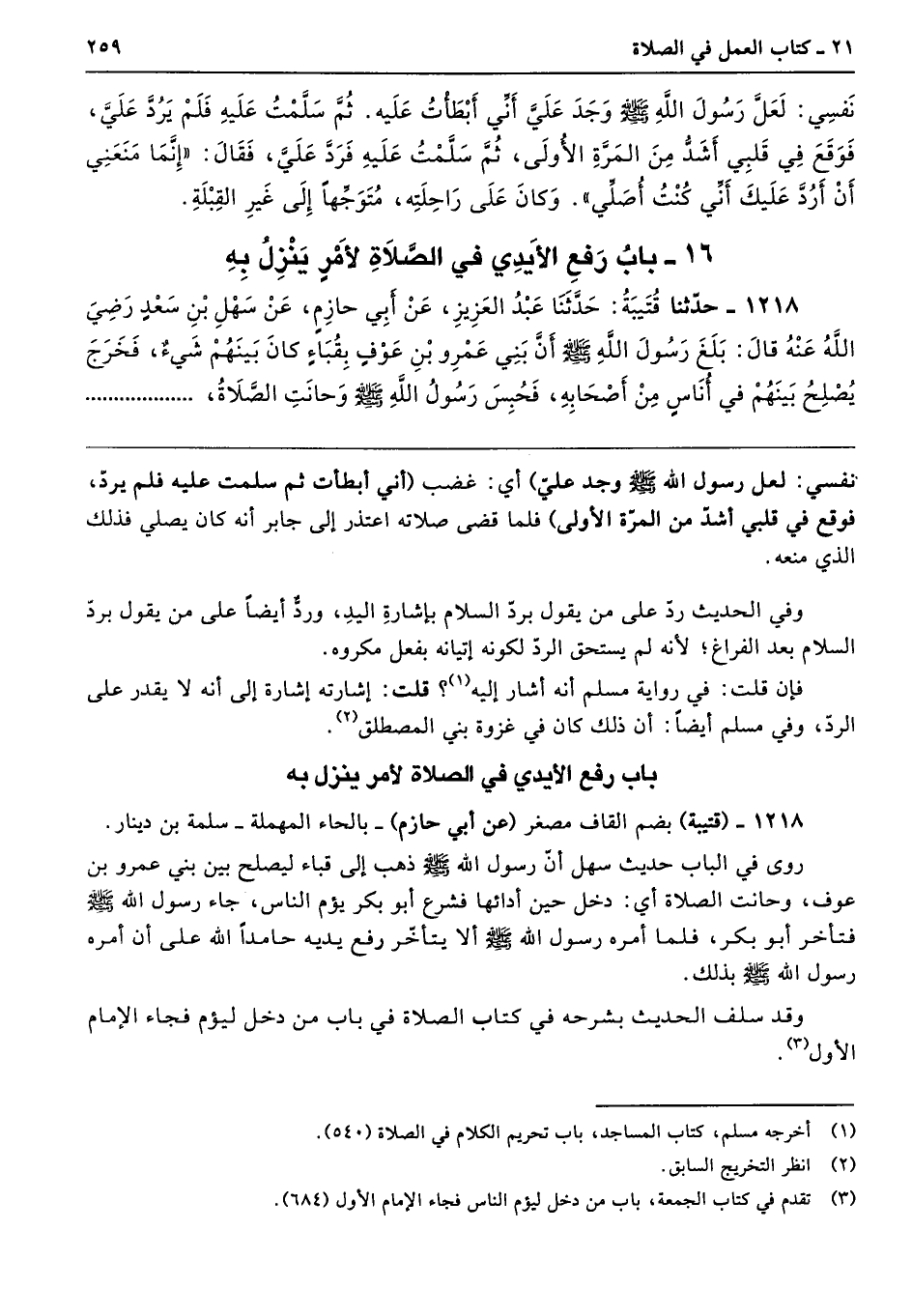 1218 - حَدَّثَنَا قُتَيْبَةُ حَدَّثَنَا عَبْدُ الْعَزِيزِ عَنْ أَبِى حَازِمٍ عَنْ سَهْلِ بْنِ سَعْدٍ - رضى الله عنه - قَالَ بَلَغَ رَسُولَ اللَّهِ - صلى الله عليه وسلم - أَنَّ بَنِى عَمْرِو بْنِ عَوْفٍ بِقُبَاءٍ كَانَ بَيْنَهُمْ شَىْءٌ، فَخَرَجَ يُصْلِحُ بَيْنَهُمْ فِي أُنَاسٍ مِنْ أَصْحَابِهِ، فَحُبِسَ رَسُولُ اللَّهِ - صلى الله عليه وسلم - وَحَانَتِ الصَّلاَةُ،