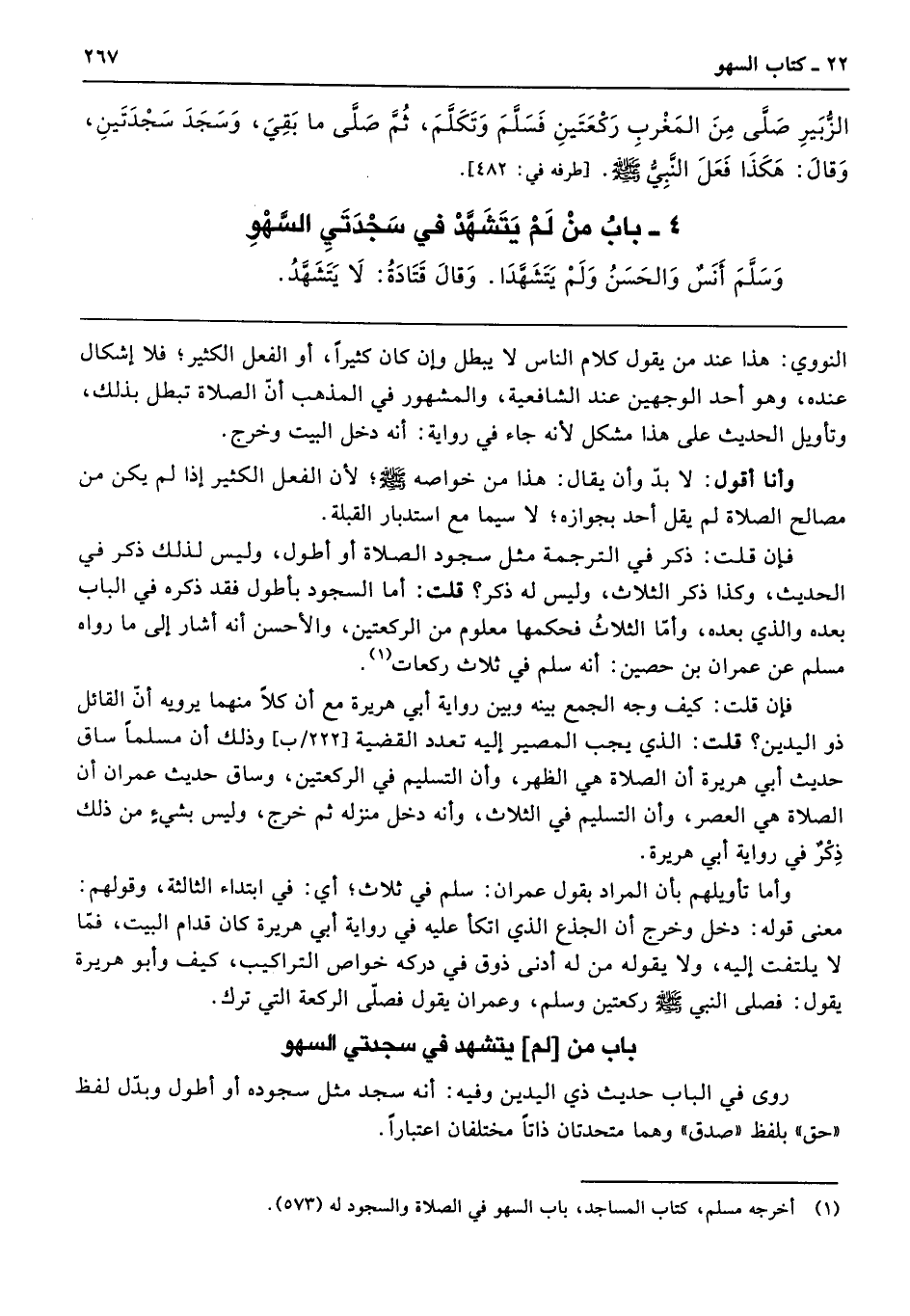 الزُّبَيْرِ صَلَّى مِنَ الْمَغْرِبِ رَكْعَتَيْنِ فَسَلَّمَ وَتَكَلَّمَ ثُمَّ صَلَّى مَا بَقِىَ وَسَجَدَ سَجْدَتَيْنِ وَقَالَ هَكَذَا فَعَلَ النَّبِىُّ - صلى الله عليه وسلم -. طرفه 482