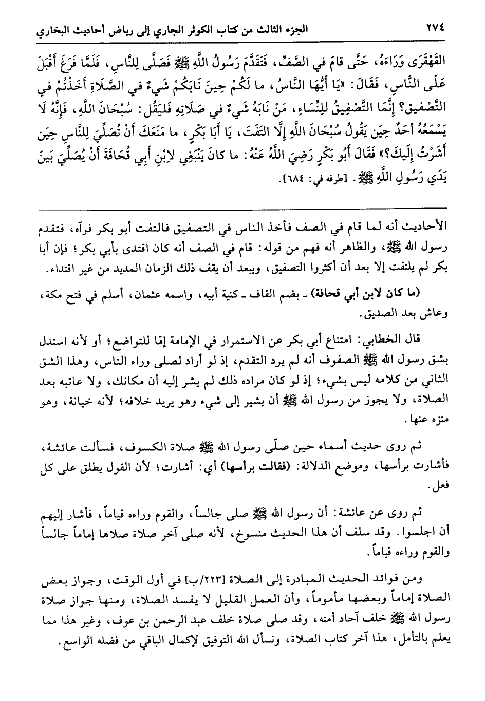 كتاب الكوثر الجاري إلى رياض أحاديث البخاري (اسم الجزء: 3)