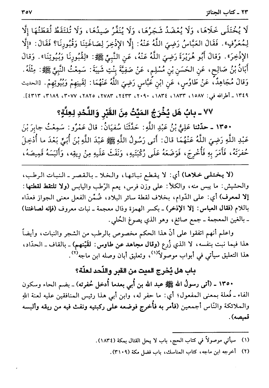 77 - باب هَلْ يُخْرَجُ الْمَيِّتُ مِنَ الْقَبْرِ وَاللَّحْدِ لِعِلَّةٍ