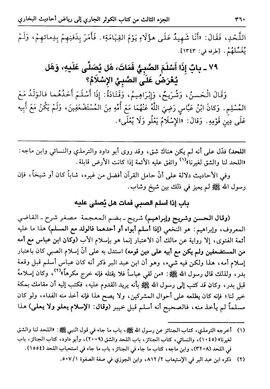 79 - باب إِذَا أَسْلَمَ الصَّبِىُّ فَمَاتَ هَلْ يُصَلَّى عَلَيْهِ وَهَلْ يُعْرَضُ عَلَى الصَّبِىِّ الإِسْلاَمُ