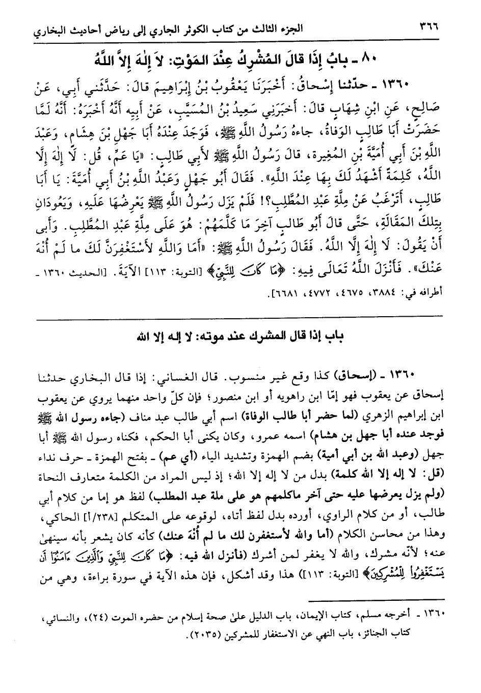80 - باب إِذَا قَالَ الْمُشْرِكُ عِنْدَ الْمَوْتِ لاَ إِلَهَ إِلاَّ اللَّهُ