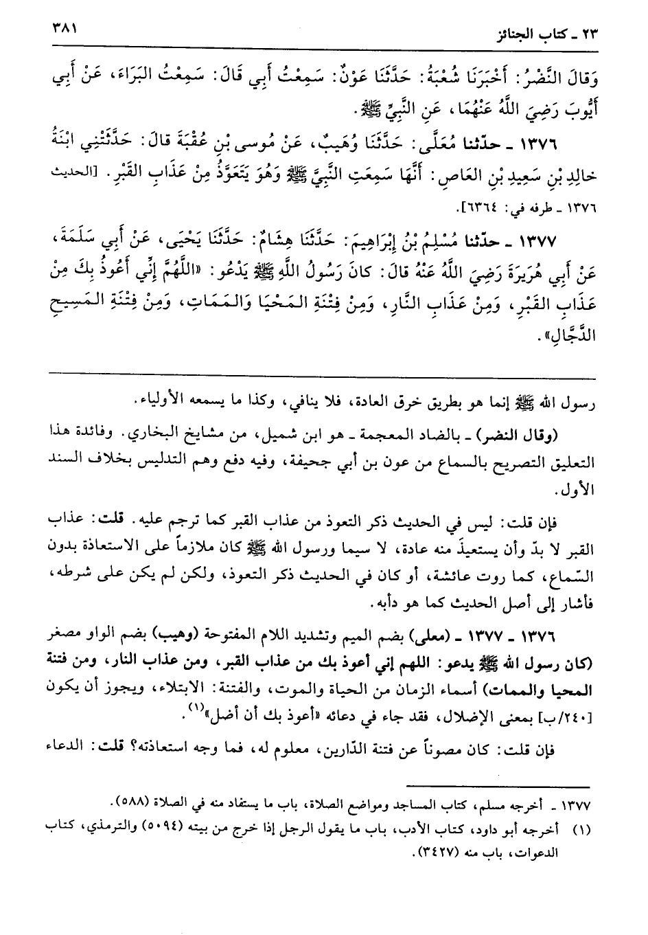 1376 - حَدَّثَنَا مُعَلًّى حَدَّثَنَا وُهَيْبٌ عَنْ مُوسَى بْنِ عُقْبَةَ قَالَ حَدَّثَتْنِى ابْنَةُ خَالِدِ بْنِ سَعِيدِ بْنِ الْعَاصِ أَنَّهَا سَمِعَتِ النَّبِىَّ - صلى الله عليه وسلم - وَهُوَ يَتَعَوَّذُ مِنْ عَذَابِ الْقَبْرِ. طرفه 6364