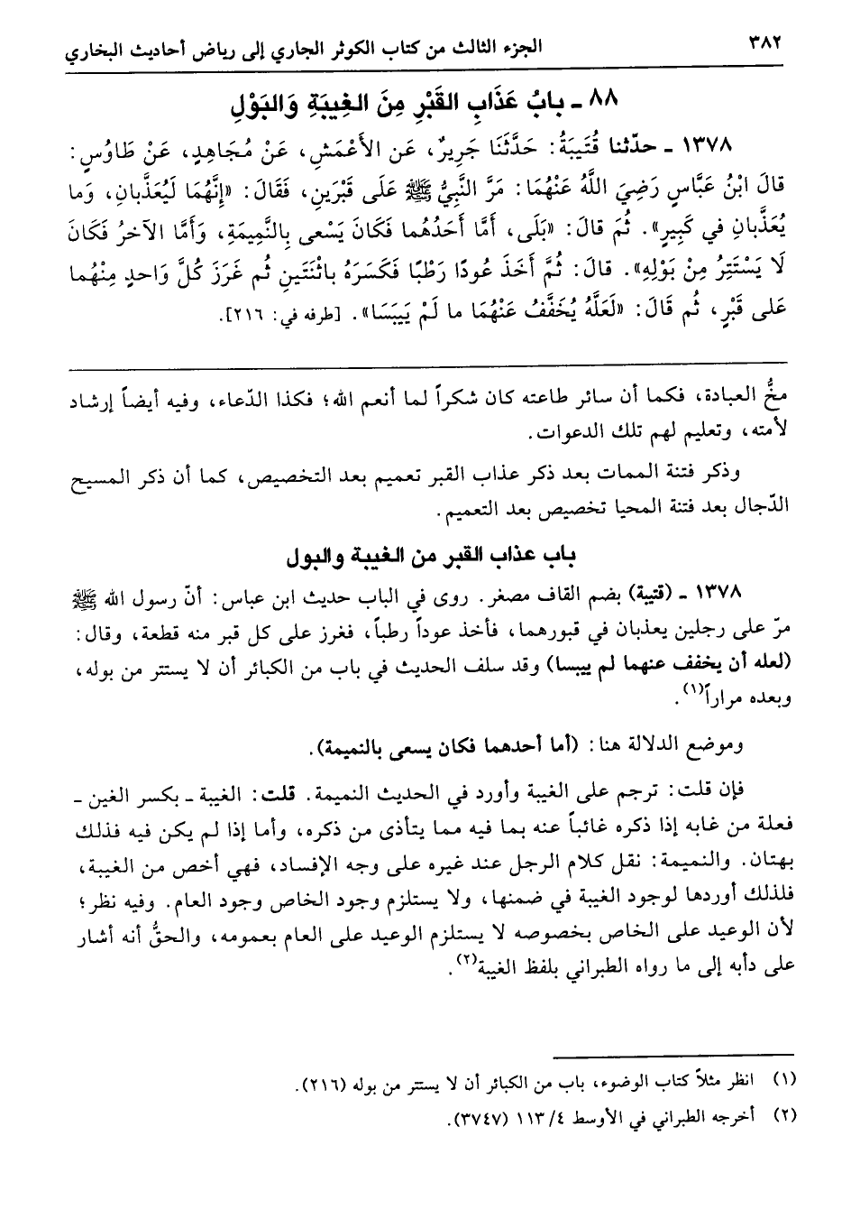 88 - باب عَذَابِ الْقَبْرِ مِنَ الْغِيبَةِ وَالْبَوْلِ