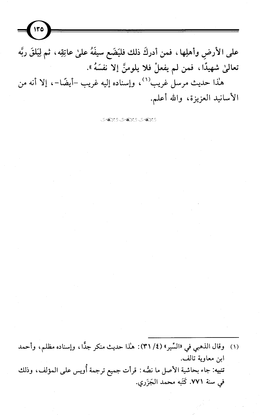 تنبيه: جاء بحاشية الأصل ما نصُّه: قرأت جميع ترجمة أُويس على المؤلف، وذلك في سنة 771. كَتَبه محمد الجَزَري.