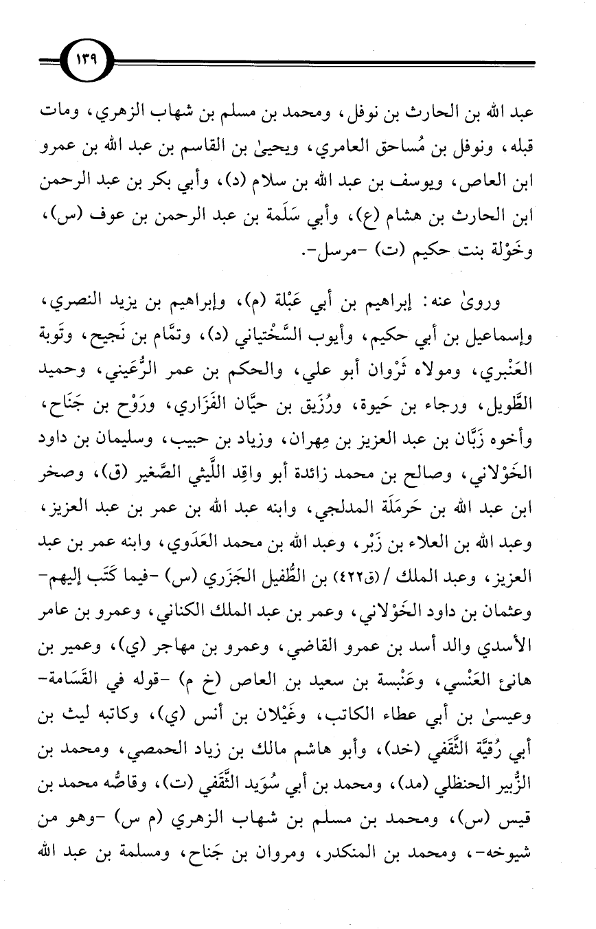 وروى عنه: إبراهيم بن أبي عَبْلة (م)، وإبراهيم بن يزيد النصري، وإسماعيل بن أبي حكيم، وأيوب السَّخْتياني (د)، وتمَّام بن نَجيح، وتَوبة العَنْبري، ومولاه ثَرْوان أبو علي، والحكم بن عمر الرُّعَيني، وحميد الطَّويل، ورجاء بن حَيوة، ورُزَيق بن حيَّان الفَزَاري، ورَوْح بن جَنَاح، وأخوه زَبَّان بن عبد العزيز بن مِهران، وزياد بن حبيب، وسليمان بن داود الخَوْلاني، وصالح بن محمد زائدة أبو واقِد اللَّيثي الصَّغير (ق)، وصخر بن عبد الله بن حَرمَلَة المدلجي، وابنه عبد الله بن عمر بن عبد العزيز، وعبد الله بن العلاء بن زَبْر، وعبد الله بن محمد العَدَوي، وابنه عمر بن عبد العزيز، وعبد الملك / (ق 422) بن الطُّفيل الجَزَري (س) -فيما كَتَب إليهم- وعثمان بن داود الخَوْلاني، وعمر بن عبد الملك الكناني، وعمرو بن عامر الأسدي والد أسد بن عمرو القاضي، وعمرو بن مهاجر (ي)، وعمير بن هانئ العَنْسي، وعَنْبسة بن سعيد بن العاص (خ م) -قوله في القَسَامة- وعيسى بن أبي عطاء الكاتب، وغَيْلان بن أنس (ي)، وكاتبه ليث بن أبي رُقيَّة الثَّقَفي (خد)، وأبو هاشم مالك بن زياد الحمصي، ومحمد بن الزُّبير الحنظلي (مد)، ومحمد بن أبي سُوَيد الثَّقَفي (ت)، وقاصُّه محمد بن قيس (س)، ومحمد بن مسلم بن شهاب الزهري (م س) -وهو من شيوخه-، ومحمد بن المنكدر، ومروان بن جَناح، ومسلمة بن عبد الله