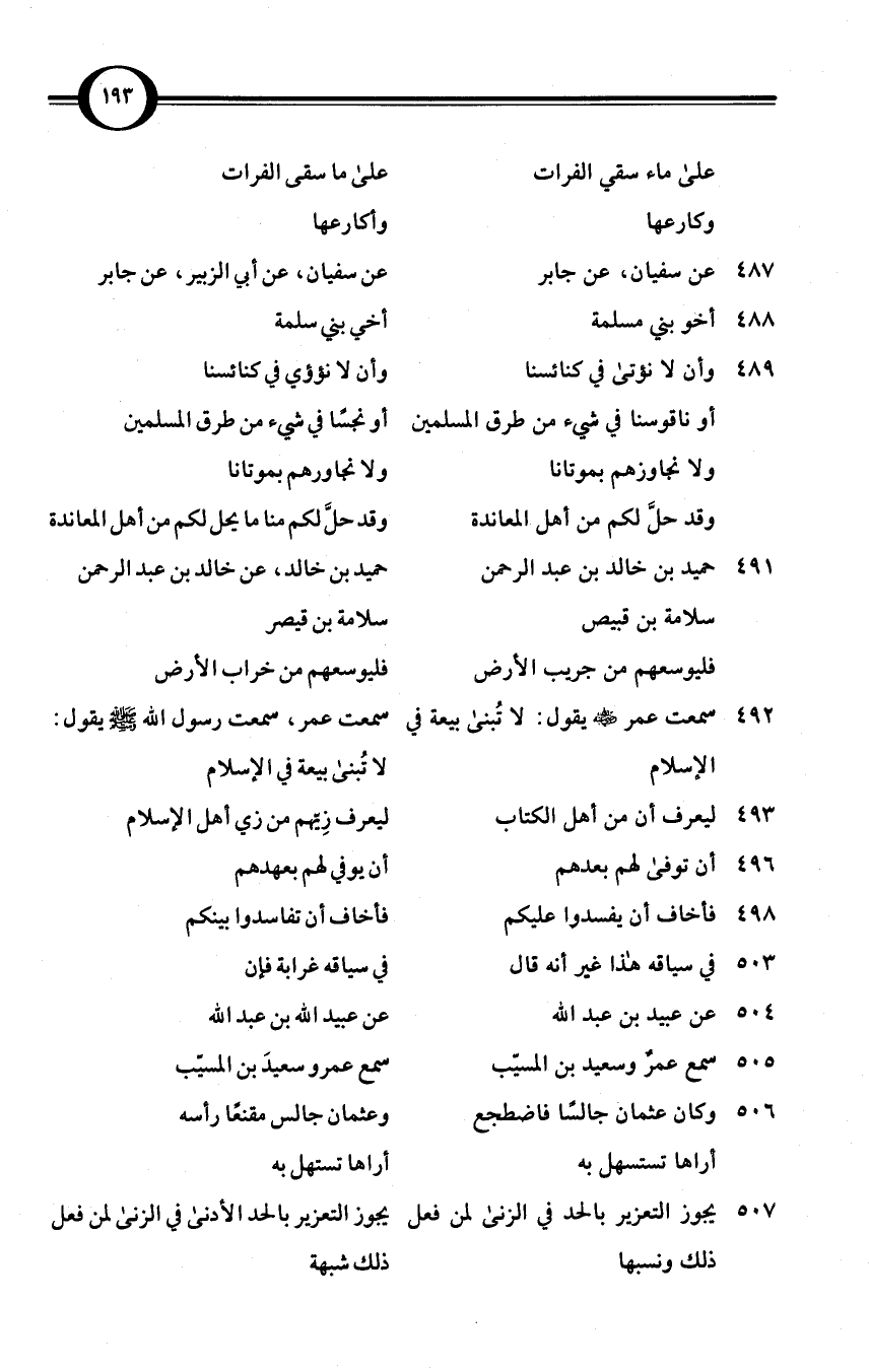 ص 492 ... سمعت عمر رضي الله عنه يقول: لا تُبنى بيعة في الإسلام ... سمعت عمر، سمعت رسول الله صلى الله عليه وسلم يقول: لا تُبنى بيعة في الإسلام