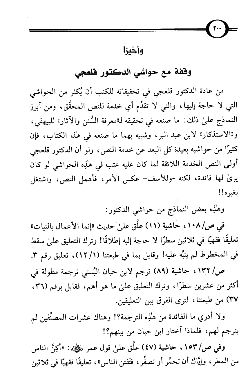 وأخيرًا: وقفة مع حواشي الدكتور قلعجي: