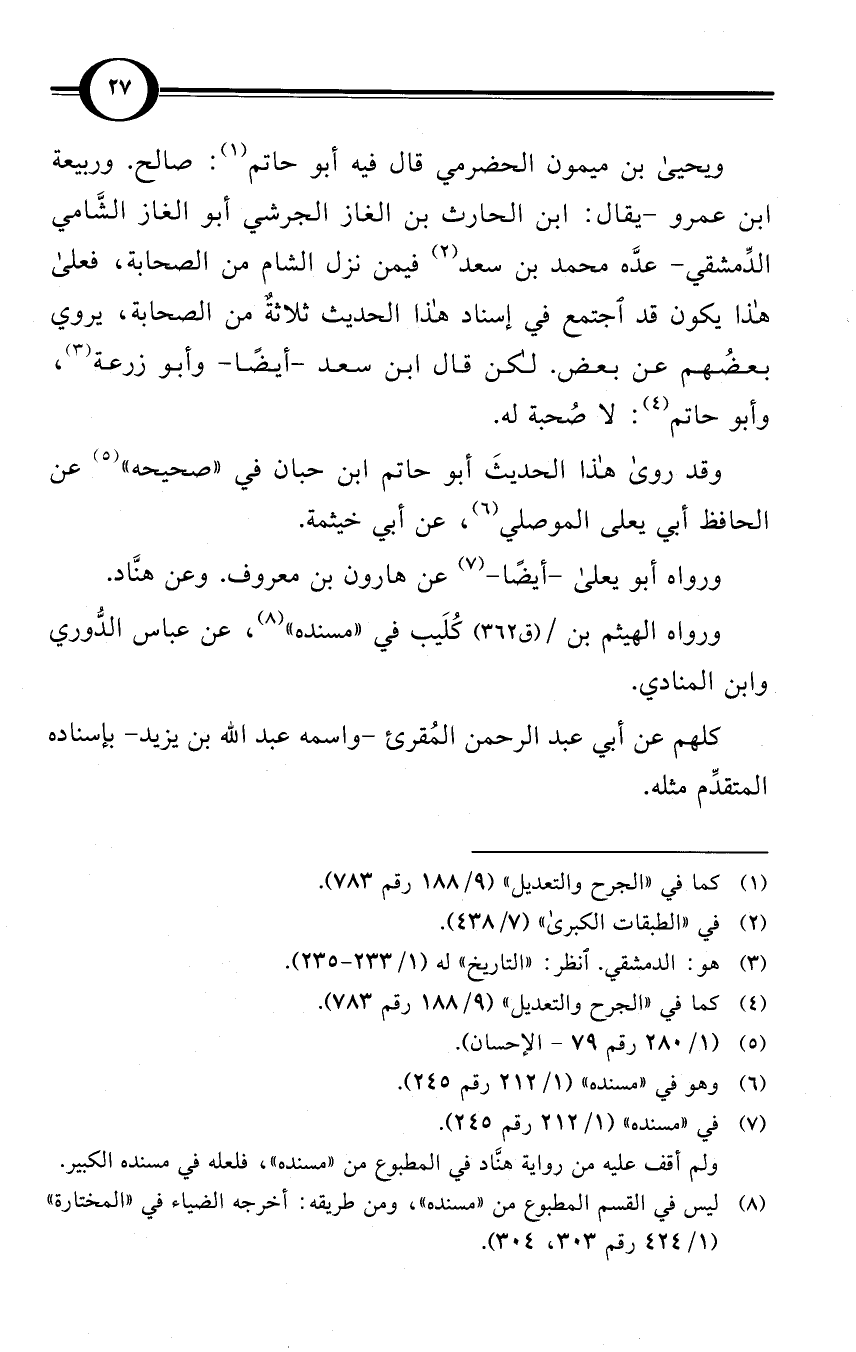 (¬4) كما في «الجرح والتعديل» (9/ 188 رقم 783).