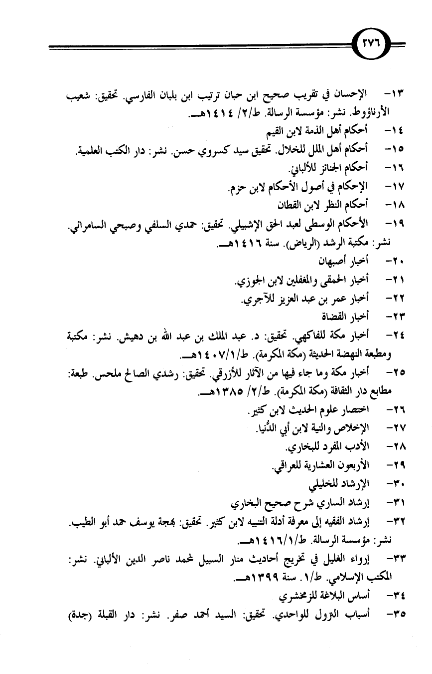 الإحسان في تقريب صحيح ابن حبان ترتيب ابن بلبان الفارسي. تحقيق: شعيب الأرناؤوط. نشر: مؤسسة الرسالة. ط/2/ 1414 هـ.