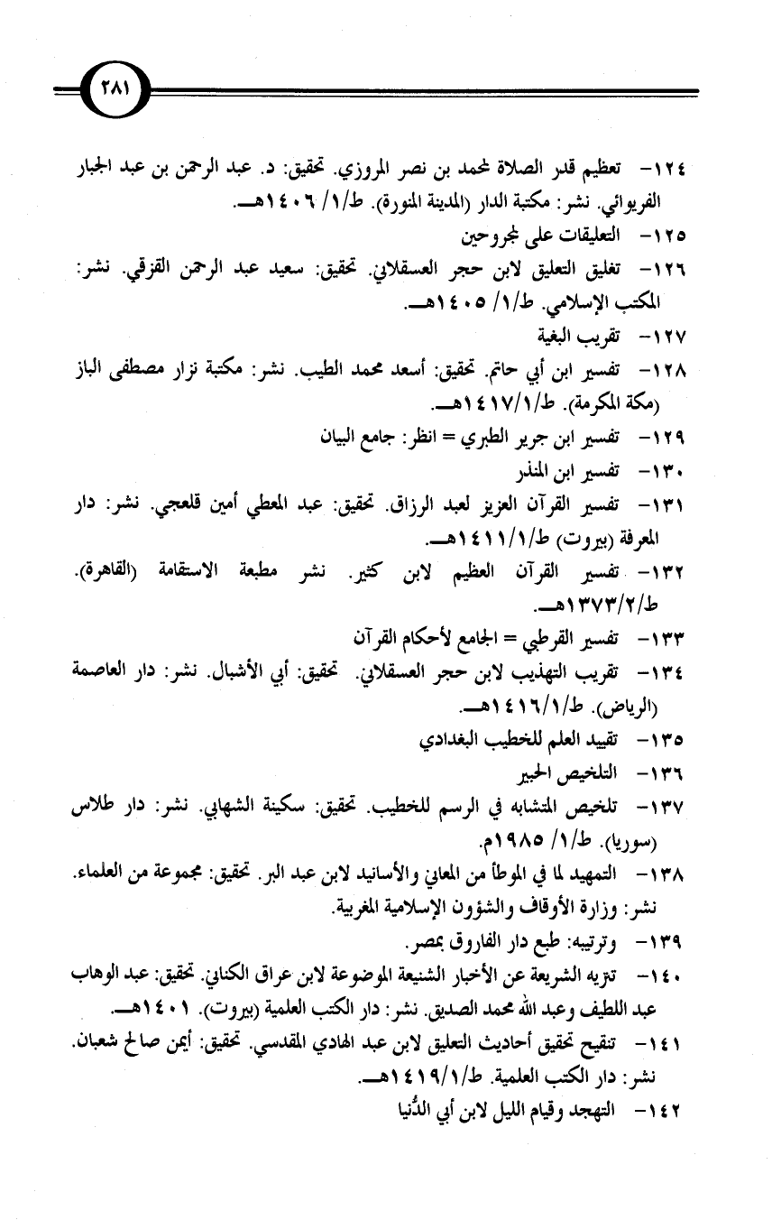 تعظيم قدر الصلاة لمحمد بن نصر المروزي. تحقيق: د. عبد الرحمن بن عبد الجبار الفريوائي. نشر: مكتبة الدار (المدينة المنورة). ط/1/ 1406 هـ.