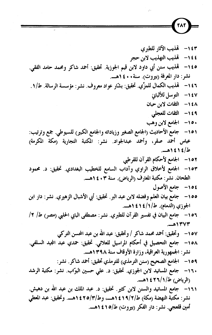 جامع بيان العلم وفضله لابن عبد البر. تحقيق: أبي الأشبال الزهيري. نشر: دار ابن الجوزي (الدمام). ط/1/ 1414 هـ.