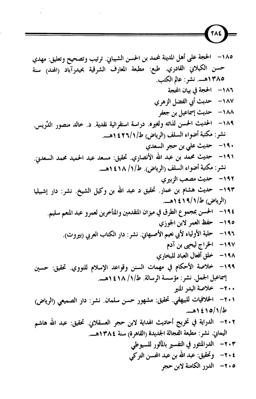 حديث هشام بن عمار. تحقيق د عبد الله بن وكيل الشيخ. نشر: دار إشبيليا (الرياض) ط/1/ 1419 هـ.