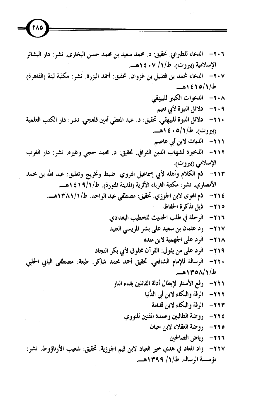 زاد المعاد في هدي خير العباد لابن قيم الجوزية. تحقيق: شعيب الأرناؤوط. نشر: مؤسسة الرسالة. ط/1/ 1399 هـ.