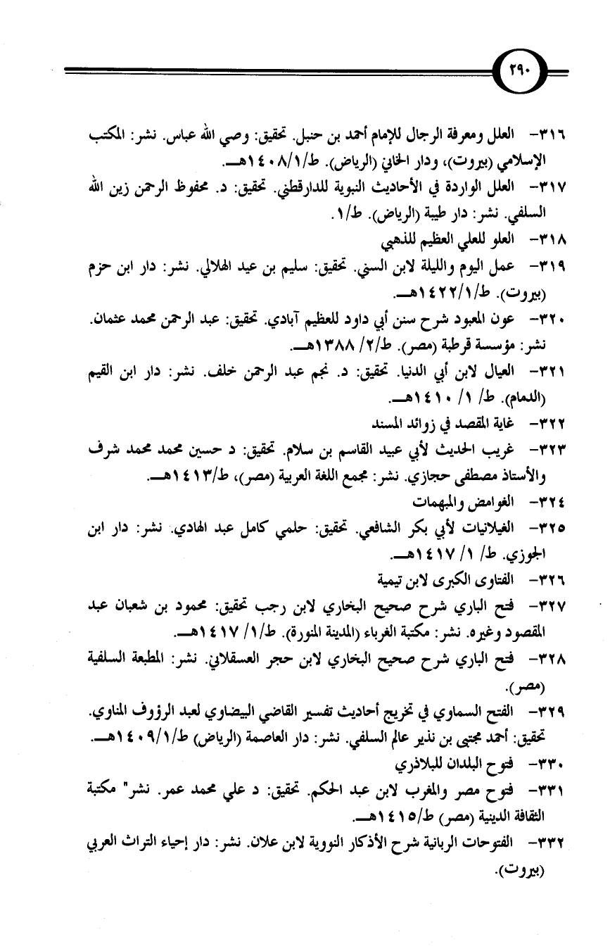 العلل ومعرفة الرجال للإمام أحمد بن حنبل. تحقيق: وصي الله عباس. نشر: المكتب الإسلامي (بيروت)، ودار الخاني (الرياض). ط/1/ 1408 هـ.