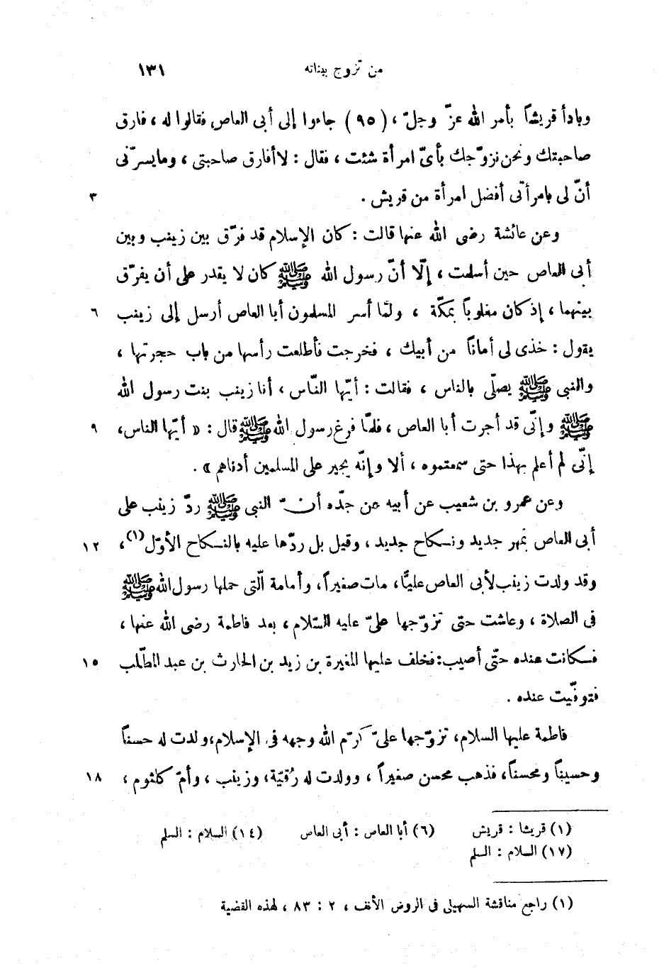 وبادأ قريشا بأمر الله عزّ وجلّ، (95) جاءوا إلى أبى العاص فقالوا له، فارق صاحبتك ونحن نزوّجك بأىّ امرأة شئت، فقال: لا أفارق صاحبتى، وما يسرّنى أنّ لى بامرأتى أفضل امرأة من قريش.