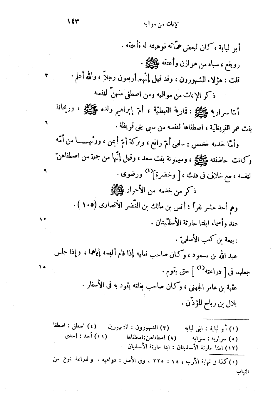 ذكر الإناث من مواليه ومن اصطفى منهنّ لنفسه