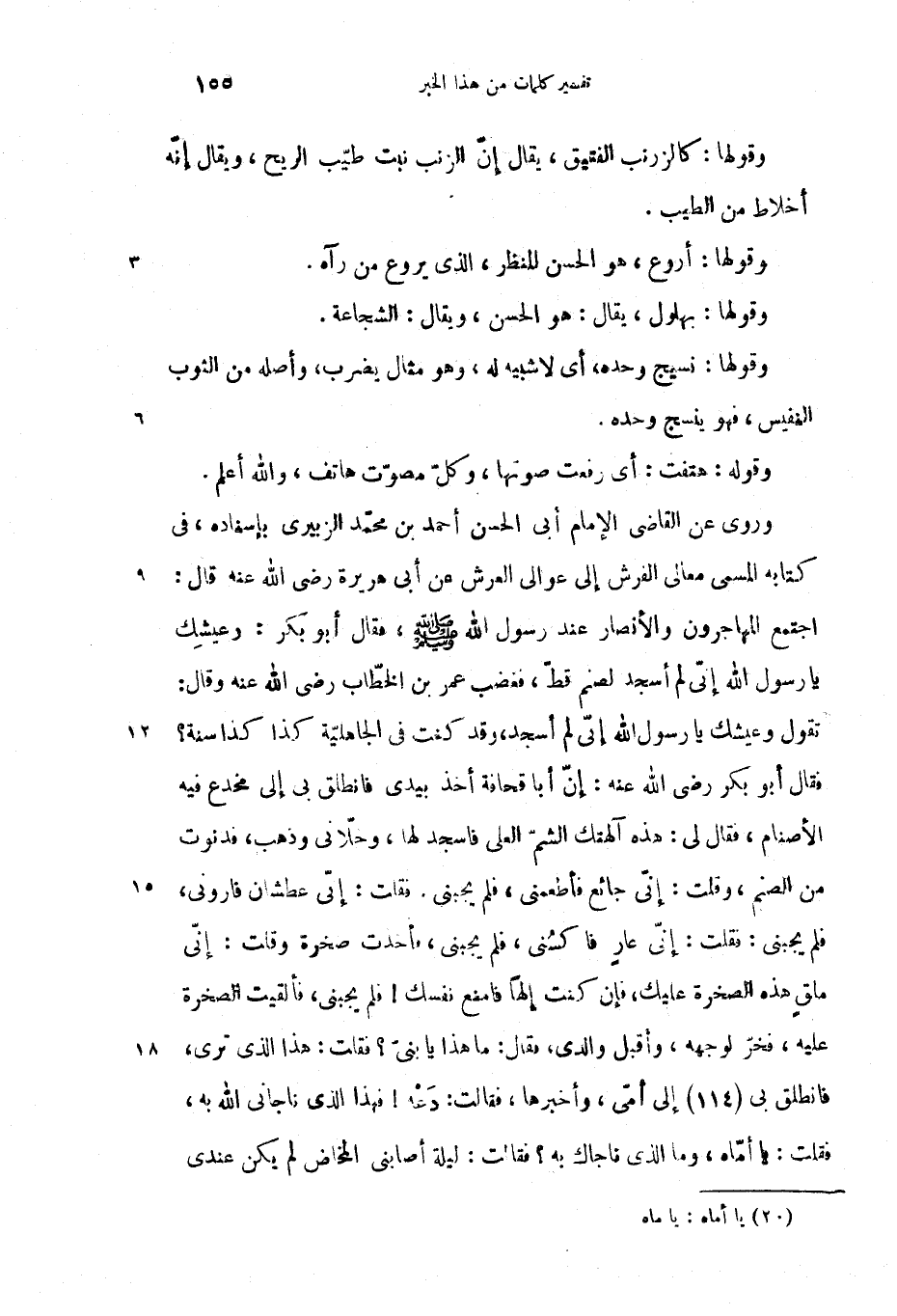 وروى عن القاضى الإمام أبى الحسن أحمد بن محمّد الزبيرى بإسناده، فى كتابه المسمى معالى الفرش إلى عوالى العرش عن أبى هريرة رضى الله عنه قال: