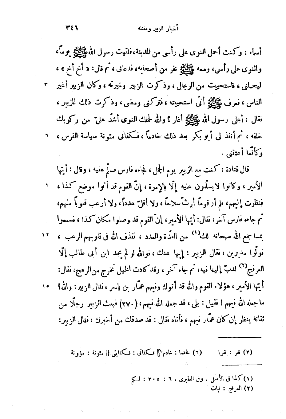 أيّها الأمير، هؤلاء القوم والله قد أتوك وفيهم عمّار بن ياسر، فقال الزبير: والله؟ ما جعله الله فيهم! فقيل: بلى، قد جعله الله فيهم، (270) فبعث الزبير رجلا من ثقاته ينظر إن كان عمّار فيهم، فأتاه فقال: قد صدقك من أخبرك، فقال الزبير:
