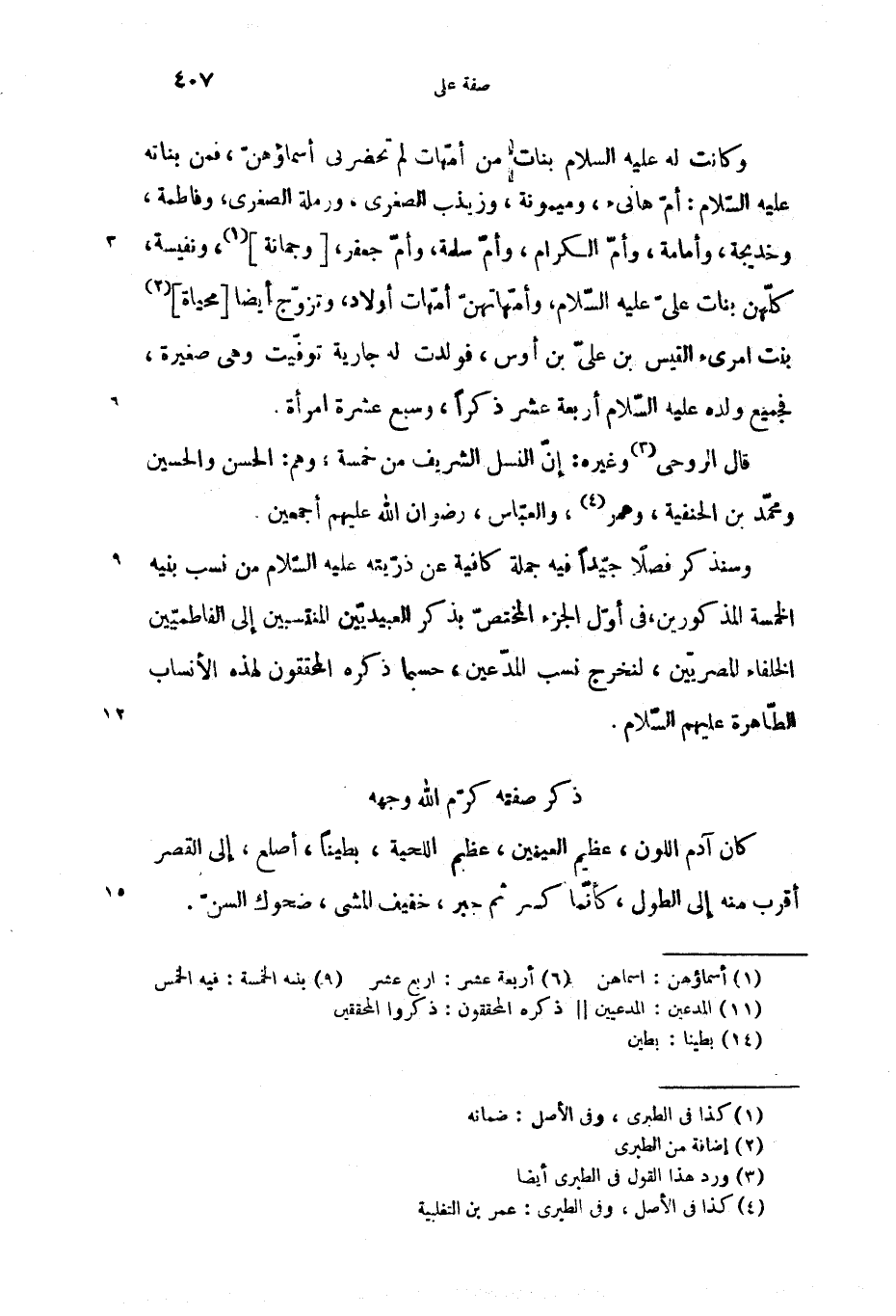 وكانت له عليه السلام بنات من أمّهات لم تحضرنى أسماؤهنّ، فمن بناته عليه السّلام: أمّ هانئ، وميمونة، وزينب الصغرى، ورملة الصغرى، وفاطمة، وخديجة، وأمامة، وأمّ الكرام، وأمّ سلمة، وأمّ جعفر، [وجمانة] (1)، ونفيسة، كلّهن بنات علىّ عليه السّلام، وأمّهاتهنّ أمّهات أولاد، وتزوّج أيضا [محياة] (2) بنت امرئ القيس بن علىّ بن أوس، فولدت له جارية توفّيت وهى صغيرة، فجميع ولده عليه السّلام أربعة عشر ذكرا، وسبع عشرة امرأة.